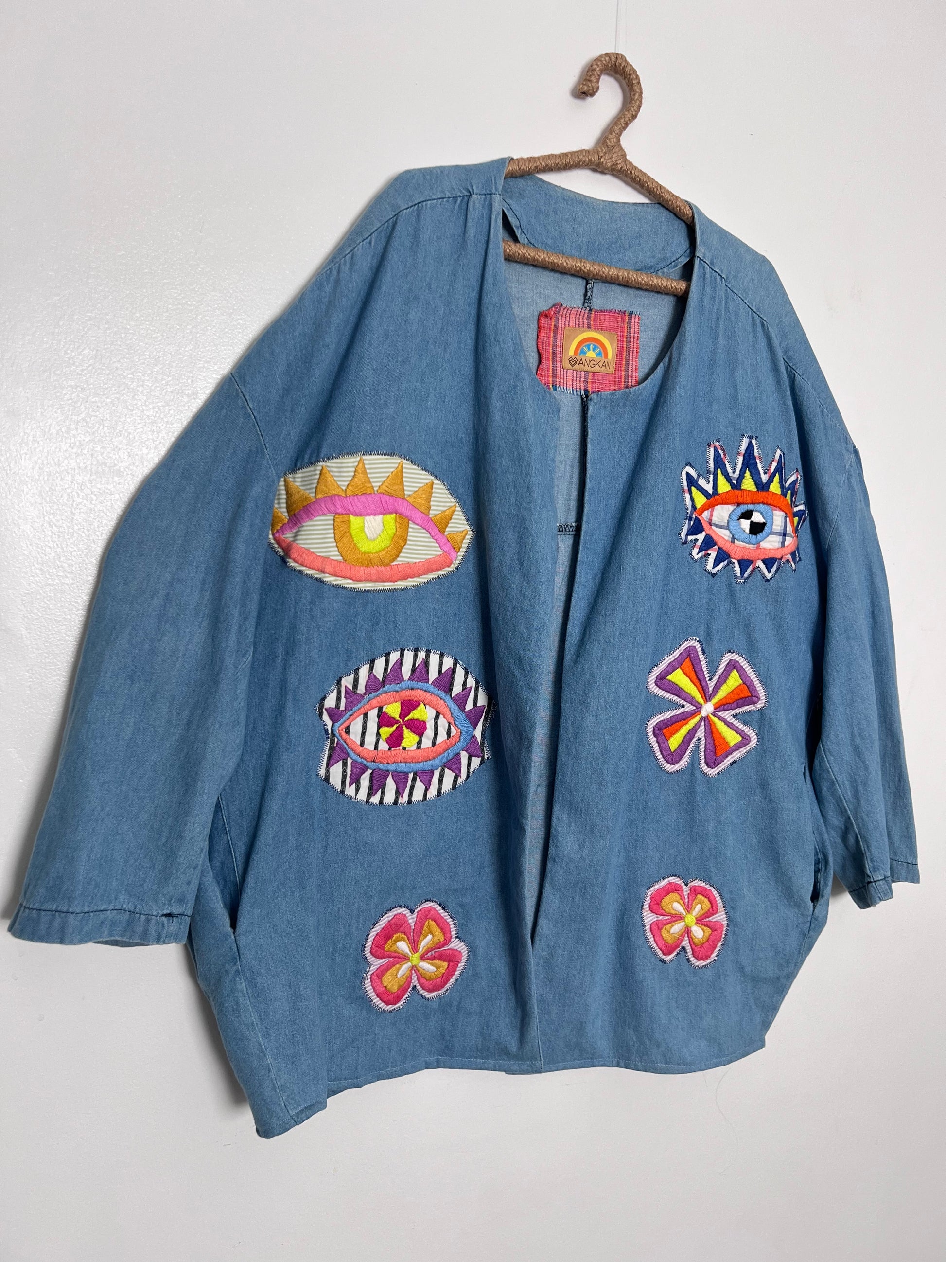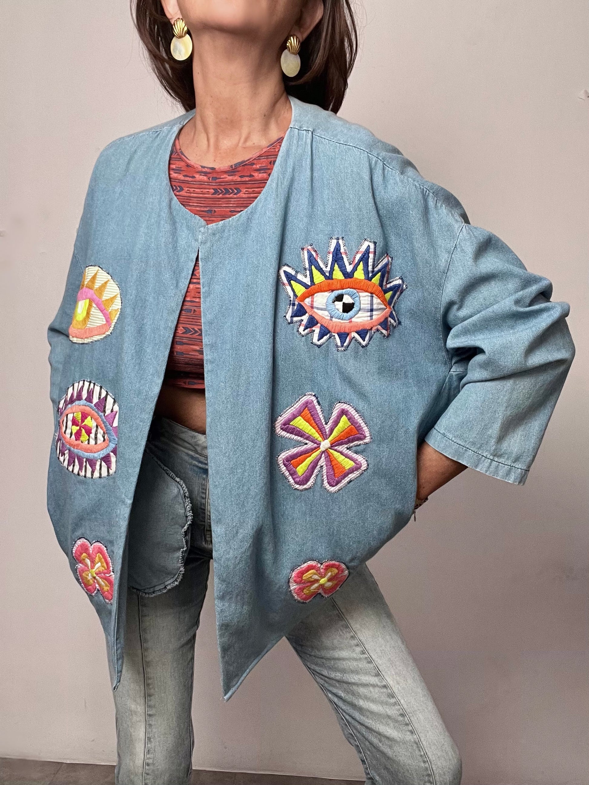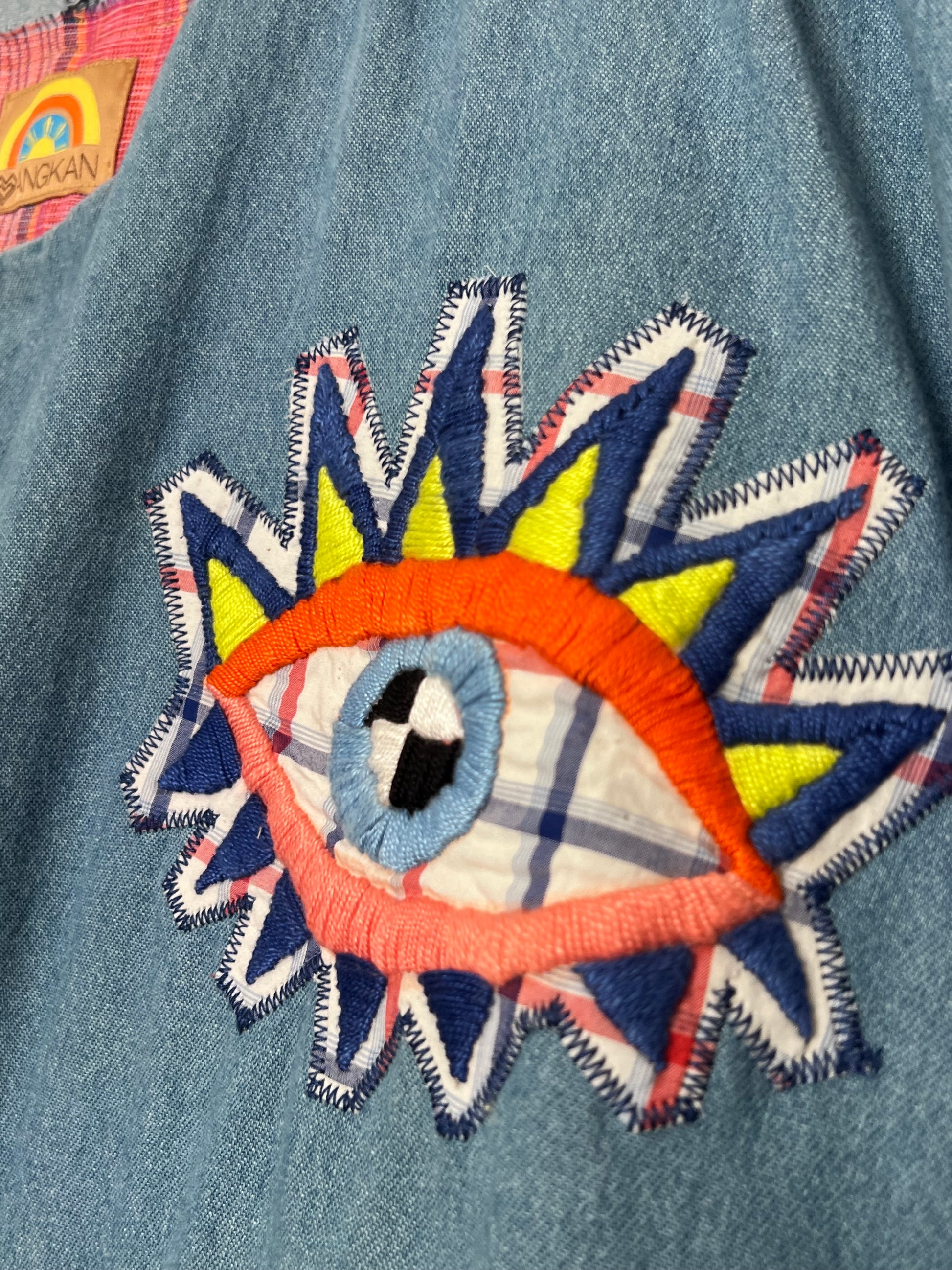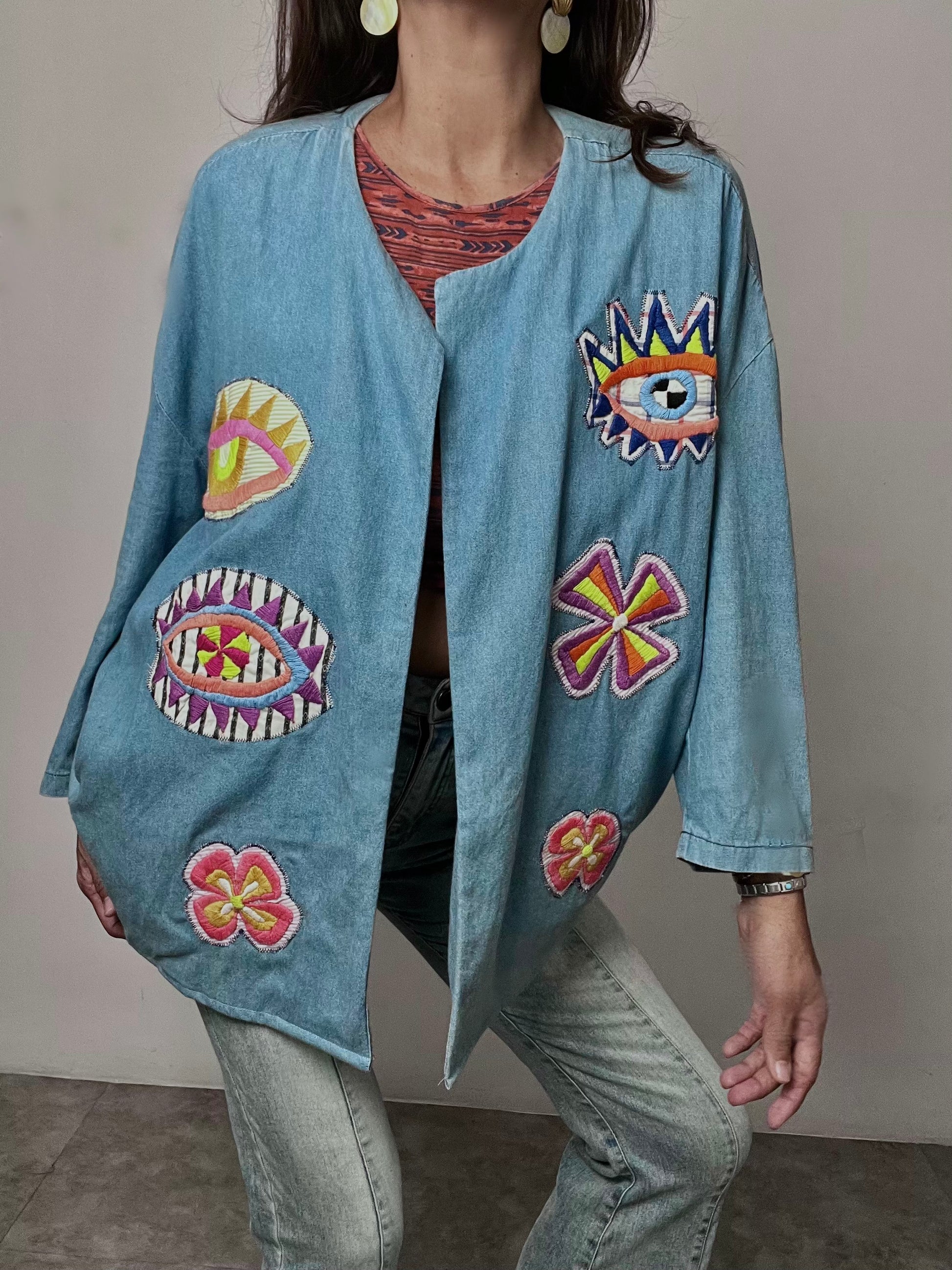 MALIA is an oversized top with side pockets crafted from 100% medium-weight cotton chambray denim, offering a soft yet structured feel that drapes effortlessly on the body. Designed for comfort and ease, its relaxed silhouette creates a cozy, breathable fit suited for everyday wear. Distinctive eye patches and hand embroidery are carefully applied by artisans in Quezon and Mindanao, each element reflecting traditional symbolism and intentional craftsmanship.